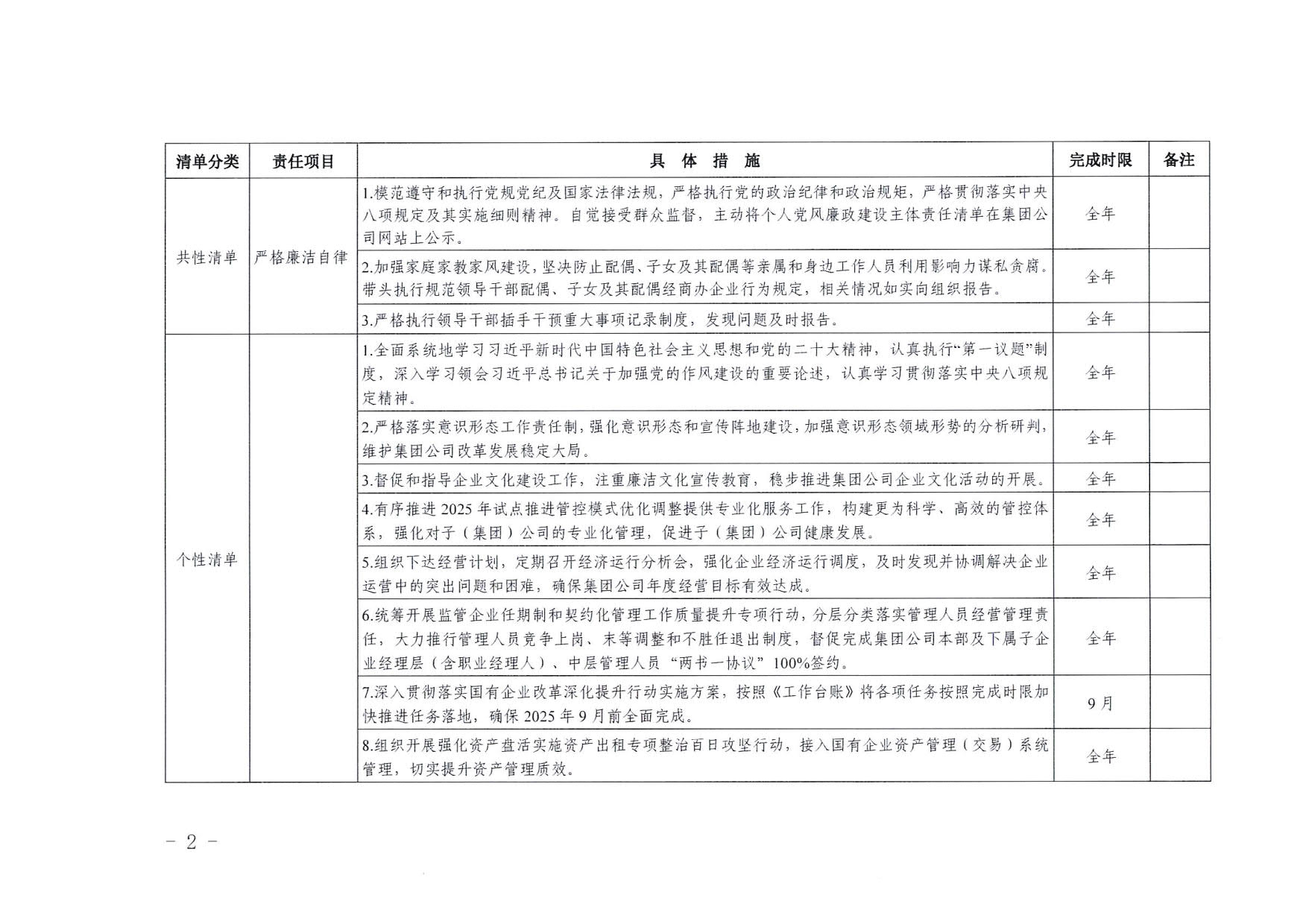 南寧交投集團領(lǐng)導(dǎo)班子其他成員2025年度黨風(fēng)廉政建設(shè)“一崗雙責”清單(二)