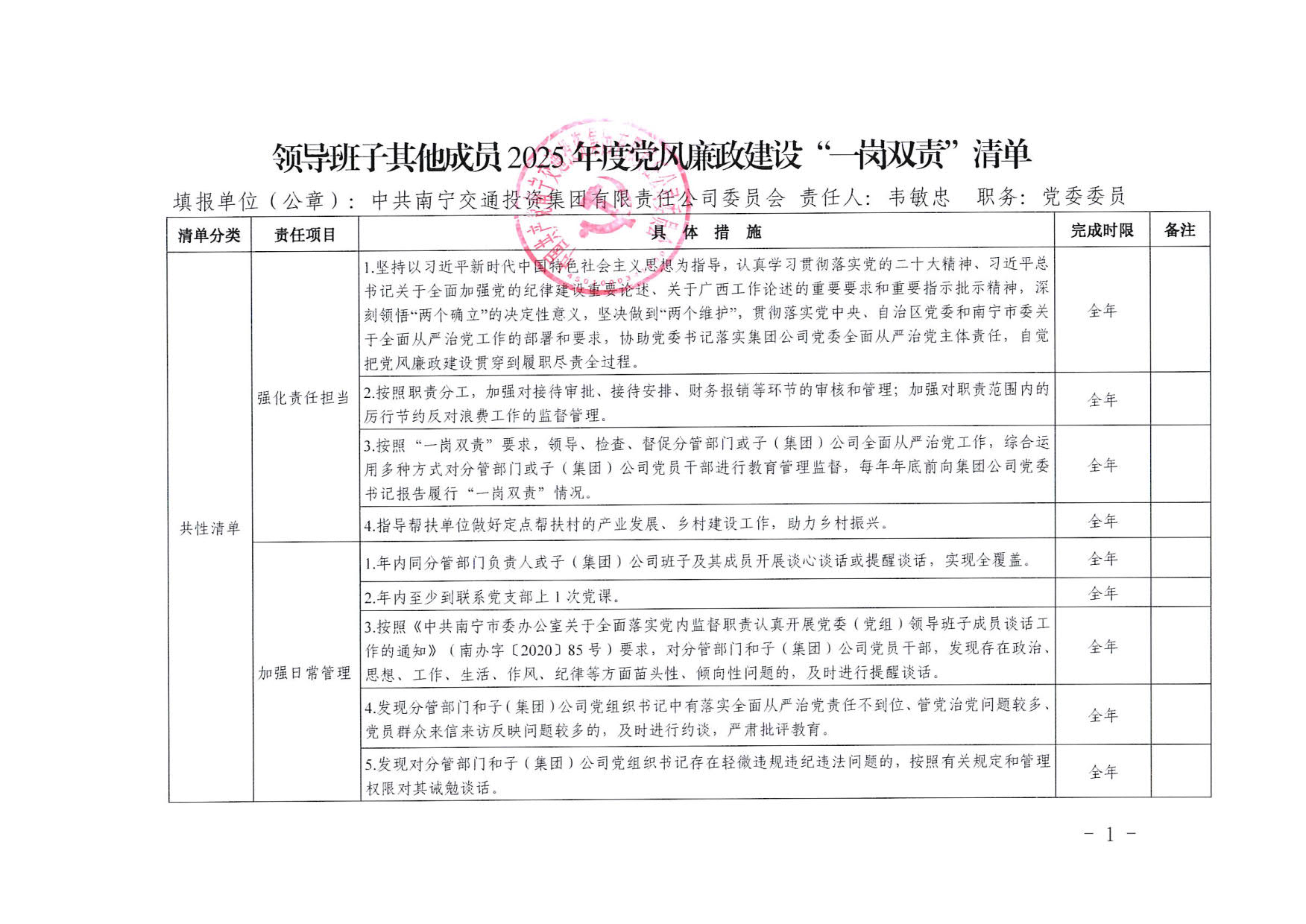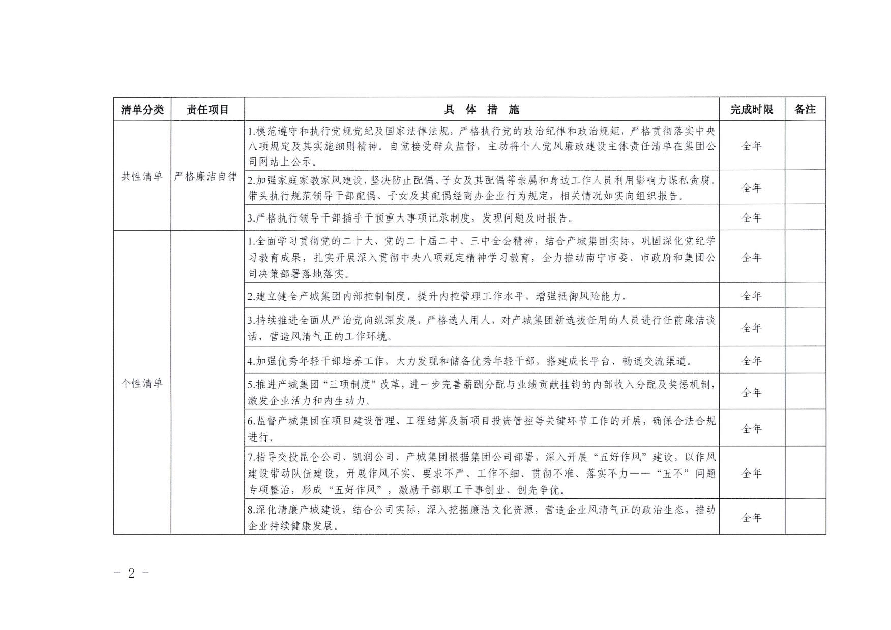 南寧交投集團領導班子其他成員2025年度黨風廉政建設“一崗雙責”清單(七)
