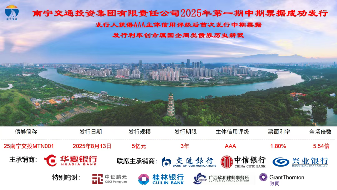 南寧交投集團(tuán)成功發(fā)行2025年度第一期中期票據(jù)
