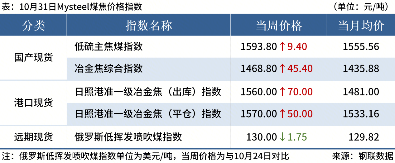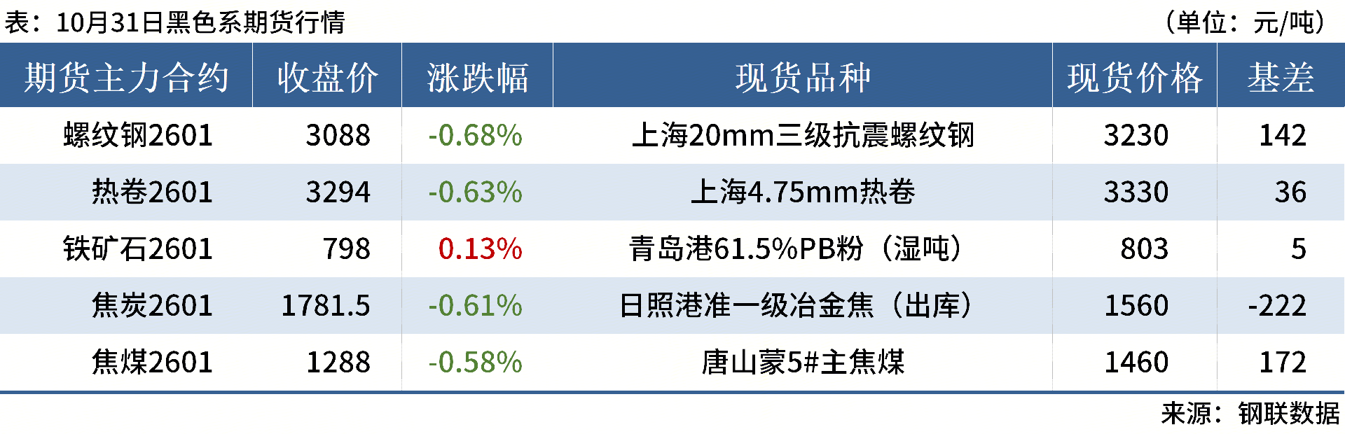 ◎ 10月31日,全國主港鐵礦石成交79.60萬噸,環(huán)比增7.6%;237家主流貿(mào)易商建筑鋼材成交8.99萬噸,環(huán)比減0.3%。