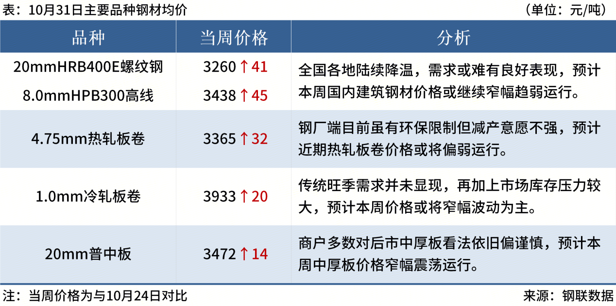◎ Mysteel建材首席分析師汪建華:展望11月鋼鐵市場,雖然基本面的壓力仍然存在,但中美關(guān)系從反復(fù)博弈走向穩(wěn)定,必將帶來宏觀情緒的好轉(zhuǎn)乃至估值的修復(fù),鋼鐵價格有望出現(xiàn)階段性反彈的態(tài)勢。詳情>>