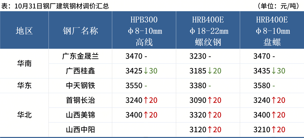 ◎ 江蘇永鋼出臺11月上旬出廠價,螺紋鋼、線材、盤螺平穩(wěn),現(xiàn)螺紋鋼3400元/噸,線材盤螺3600元/噸。
