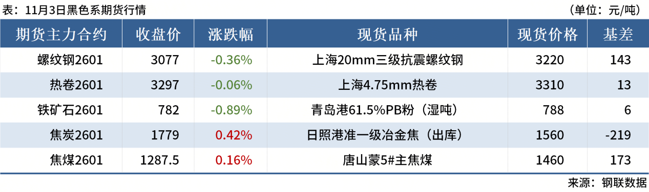 ◎11月3日,全國主港鐵礦石成交129.30萬噸,環(huán)比增62.4%;237家主流貿(mào)易商建筑鋼材成交9.80萬噸,環(huán)比增9%。