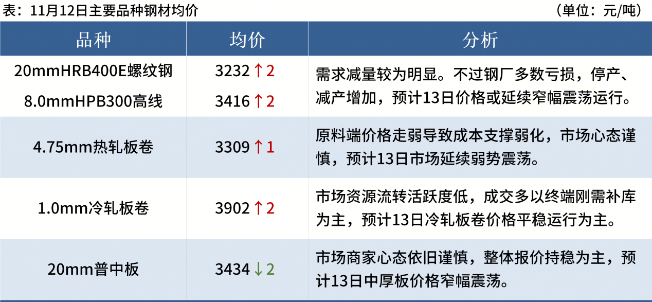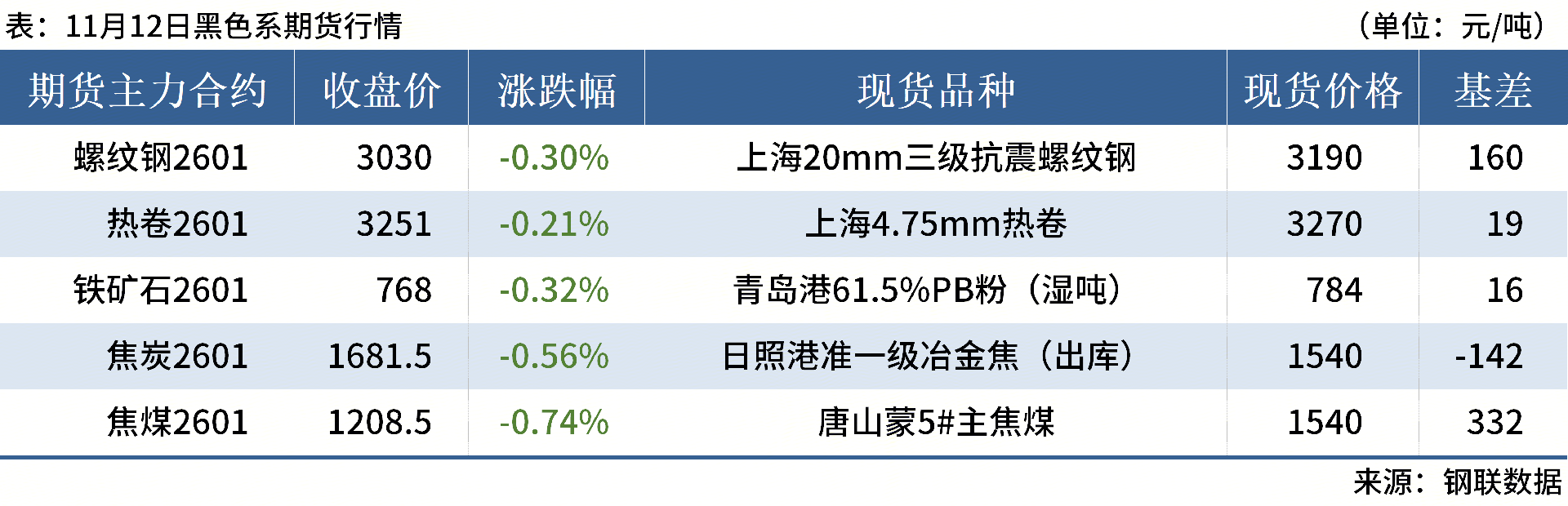 ◎ 11月12日,全國主港鐵礦石成交98.80萬噸,環(huán)比減8.3%;237家主流貿(mào)易商建筑鋼材成交9.16萬噸,環(huán)比增0.6%。