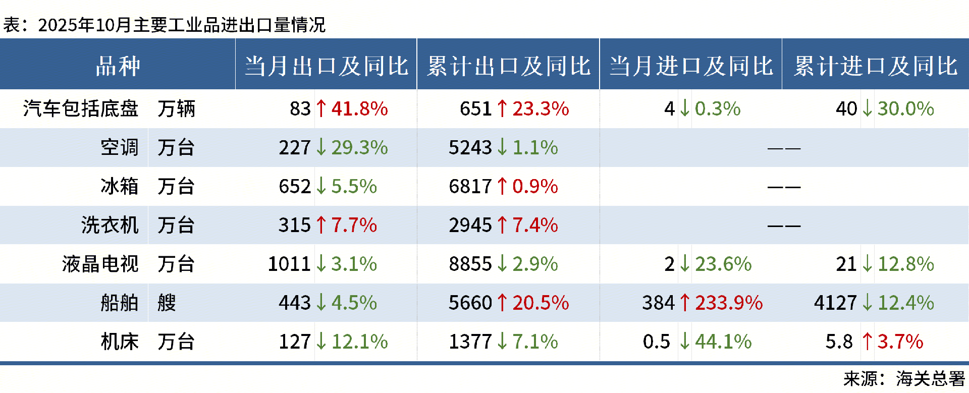 ◎海關(guān)總署數(shù)據(jù)顯示,10月中國(guó)出口汽車83萬(wàn)輛,同比增長(zhǎng)41.8%;1-10月累計(jì)出口651萬(wàn)輛,同比增長(zhǎng)23.3%。具體如下: