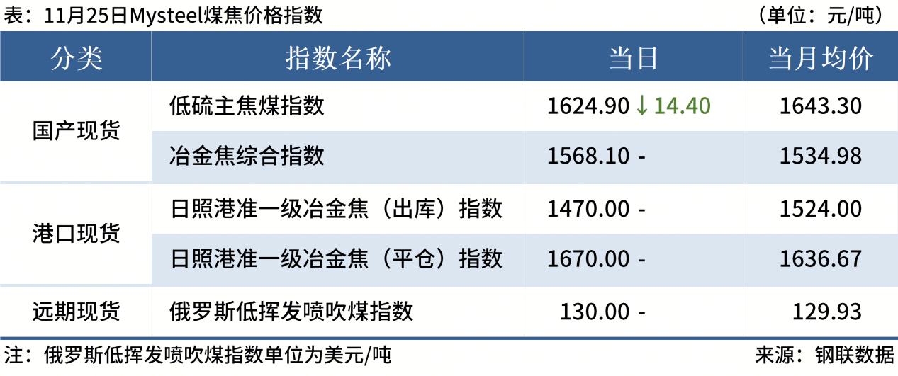 ◎ 11月25日,Mysteel進口鐵礦石62%澳洲粉礦遠期現(xiàn)貨指數(shù)105.6美元/干噸,漲0.85美元/干噸;65%巴西粉礦遠期現(xiàn)貨指數(shù)118.15美元/干噸,漲0.8美元/干噸。