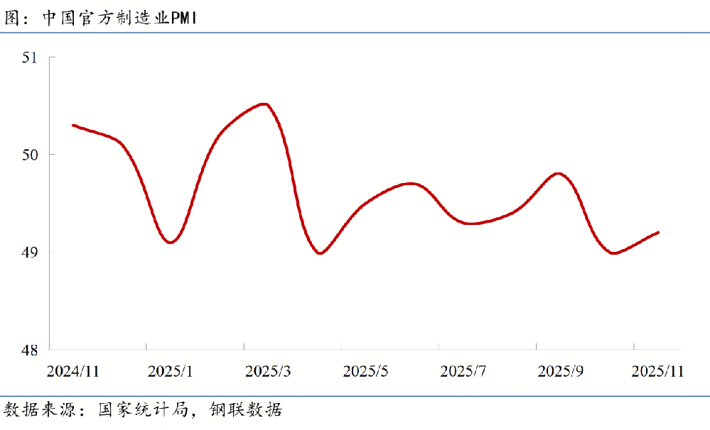 ◎ 國家統(tǒng)計局?jǐn)?shù)據(jù)顯示,11月份我國制造業(yè)PMI為49.2%,比上月上升0.2個百分點;非制造業(yè)PMI為49.5%,比上月下降0.6個百分點;綜合PMI產(chǎn)出指數(shù)為49.7%,比上月下降0.3個百分點。