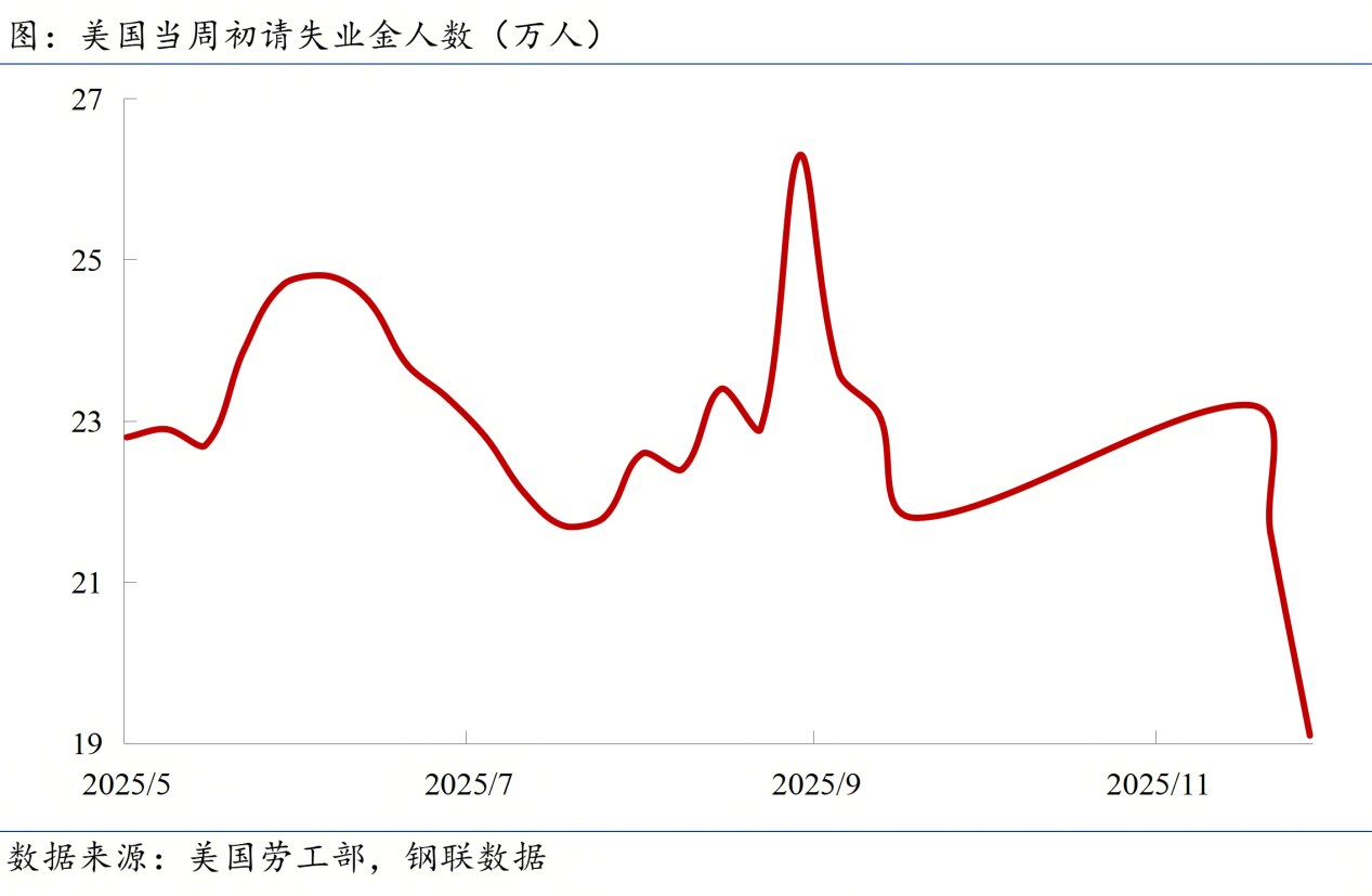 ◎ 美國勞工部官網(wǎng)顯示,11月29日當(dāng)周初請失業(yè)金人數(shù)意外降至19.1萬人,遠(yuǎn)低于市場預(yù)期的22萬人及前值21.8萬人,突顯勞動力市場韌性,與近期疲軟信號形成反差。