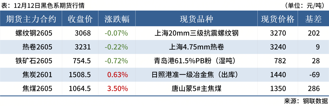 ◎ 12月12日,全國主港鐵礦石成交87.60萬噸,環(huán)比減11.6%;237家主流貿(mào)易商建筑鋼材成交9.05萬噸,環(huán)比減1.9%。