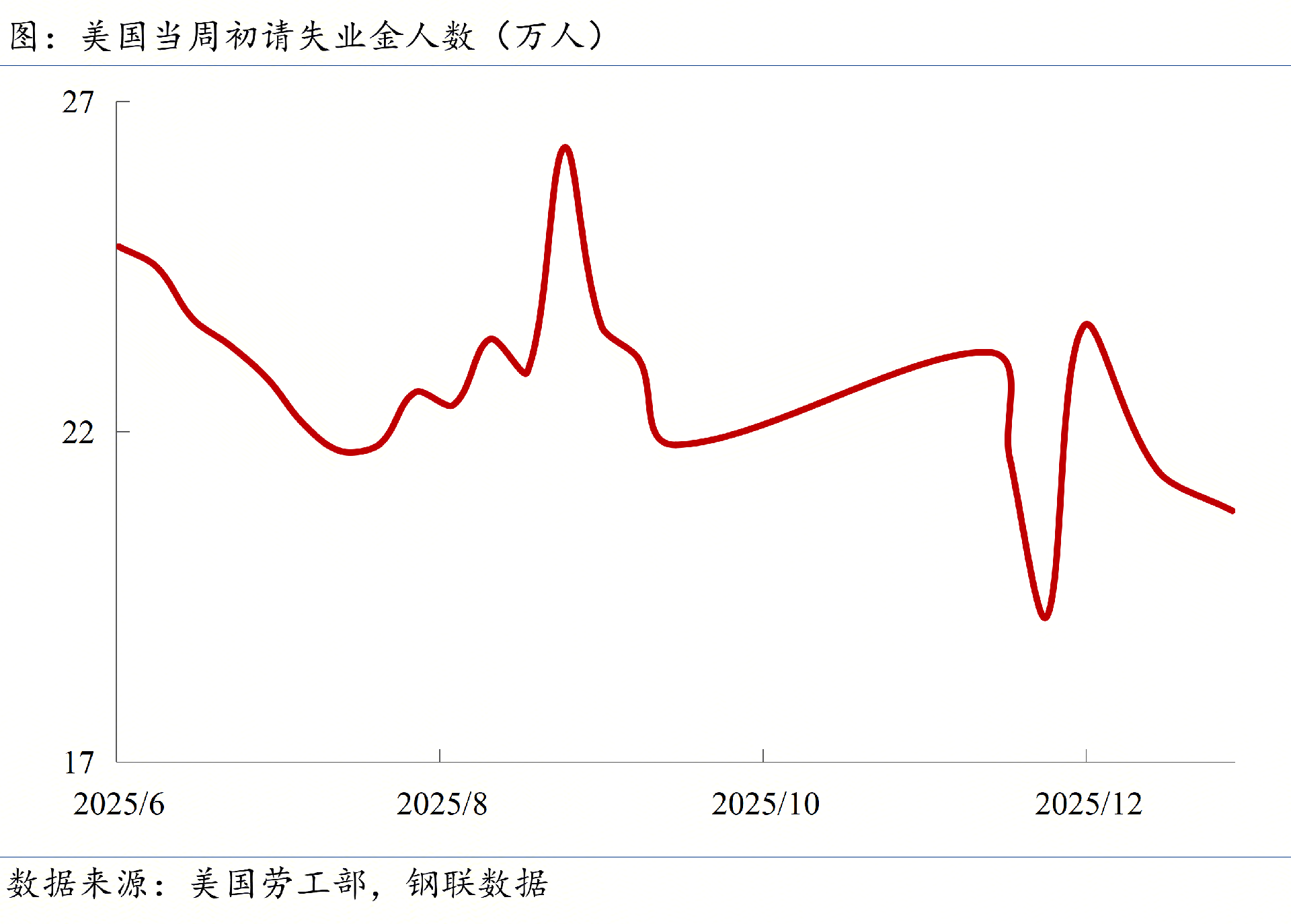 ◎美國(guó)勞工局最新數(shù)據(jù)顯示,截至2026年1月3日當(dāng)周,美國(guó)初請(qǐng)失業(yè)金人數(shù)為?20.8萬人?,低于市場(chǎng)預(yù)期的21萬人,仍處于歷史低位區(qū)間。