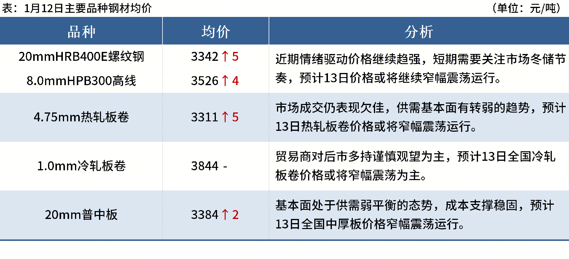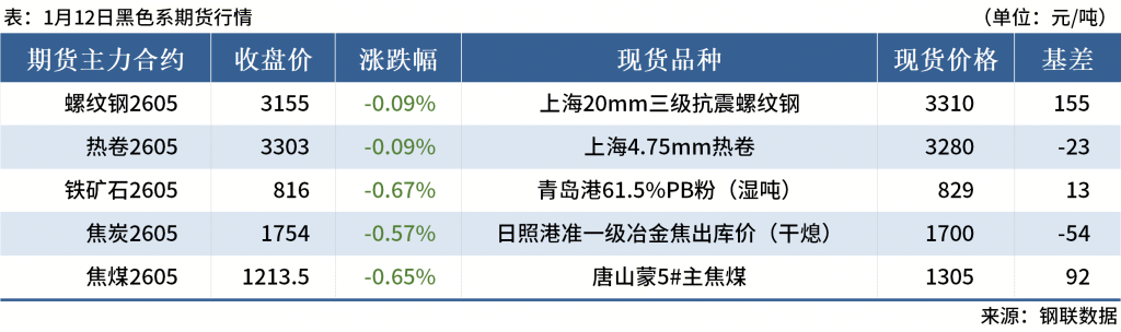 ◎1月12日,全國(guó)主港鐵礦石成交75.24萬(wàn)噸,環(huán)比減19.7%;237家主流貿(mào)易商建筑鋼材成交10.58萬(wàn)噸,環(huán)比增18.5%。