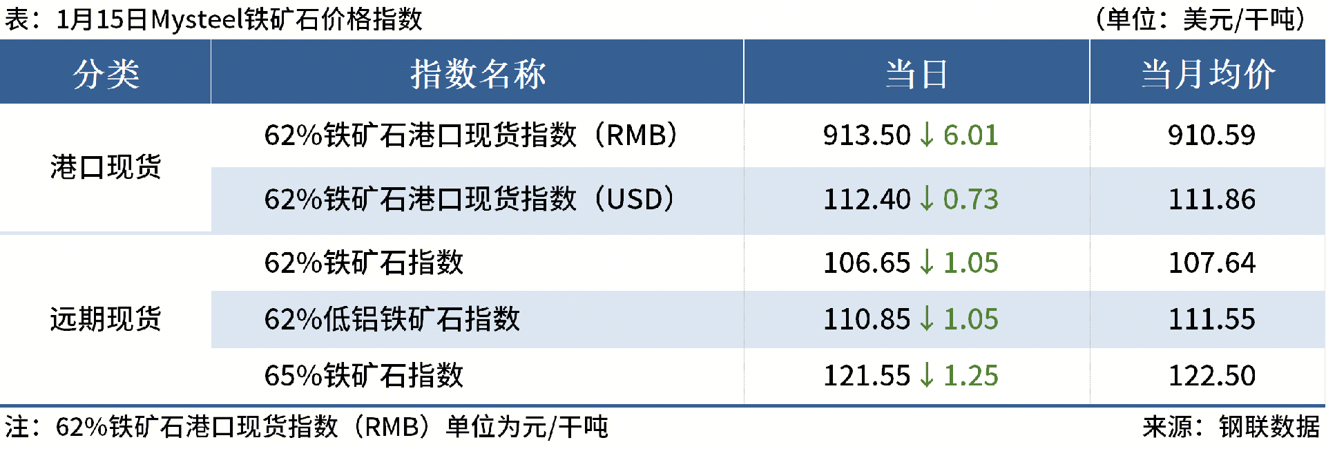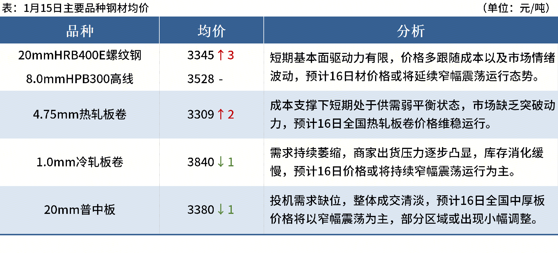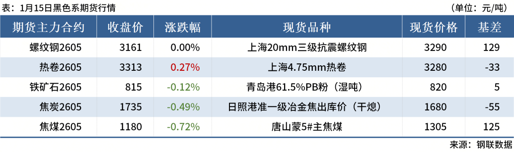 ◎1月15日,全國主港鐵礦石成交98.12萬噸,環(huán)比減20.3%;237家主流貿(mào)易商建筑鋼材成交8.62萬噸,環(huán)比減2.7%。