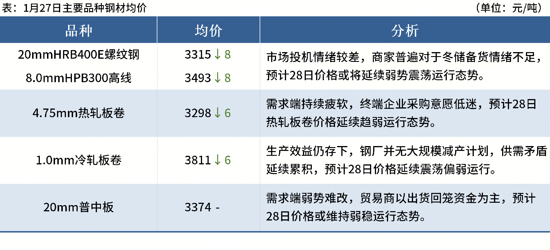 ◎方大特鋼棒材生產(chǎn)線自1月27日開始檢修,計(jì)劃為期8天,預(yù)計(jì)影響建筑材產(chǎn)量3.5萬(wàn)噸。