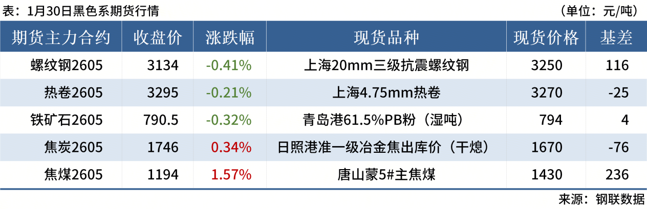 ◎1月30日,全國主港鐵礦石成交90.70萬噸,環(huán)比增4.9%;237家主流貿(mào)易商建筑鋼材成交5.60萬噸,環(huán)比減23.1%。